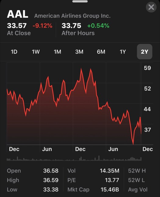 And… buy AAL! The market has been taking a hit lately and there are some solid companies to buy in at a favorable entry point. People still need to fly and AAL is the worlds largest airline. Opportunity for a quick in and out @ 5-10% or long-haul it if it continues to slide a bit more.