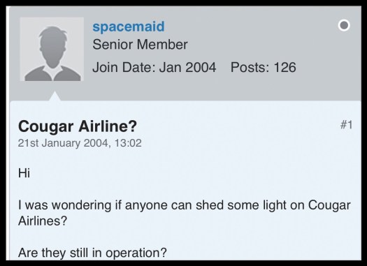 Posted on April 9, 2019April 9, 2019 by russiangoatCougar AIRLINES 1.0 Dear Spacemaid, Yes. Sincerely, Greg the Scientist Share this: Click to share on X (Opens in new window) X Click to share on Facebook (Opens in new window) Facebook Like Loading...