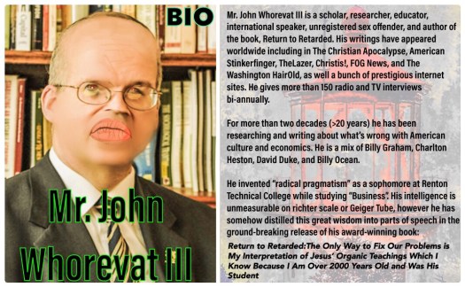 Front: Highly superior religious scholars who have a plan to save the World by getting Walmart to stop selling Jesus toilet seat covers