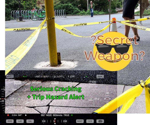 Action: ERRORS quickly and efficiently cordoned off the concrete cracking and settlement zone with cones and high visibility caution tape to reduce the likelihood of severe injury or death. We then brought in some SERIOUS BACKUP and our “SECRET WEAPON” – PAM THE OWL!! Pam specializes in giant underground death worm detection and strategic death worm eradication planning. ERRORS and Pam provided the University representative a safety & monitoring protocol pamphlet, and then went to the Jack n the Box on The Ave to buy Crack.