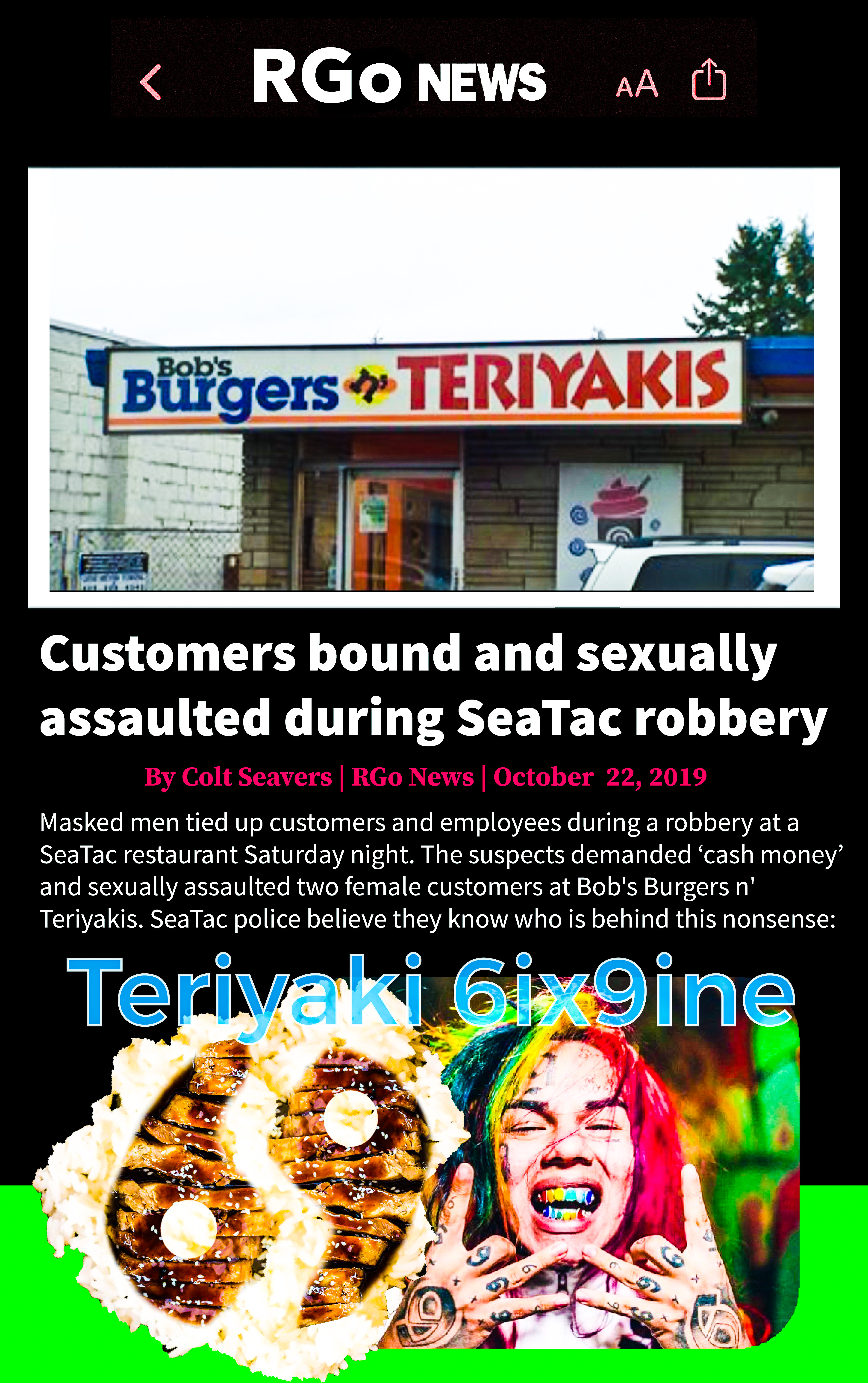 Posted on October 22, 2019 by russiangoatRGo News 6.5 Share this: Click to share on X (Opens in new window) X Click to share on Facebook (Opens in new window) Facebook Like Loading...
